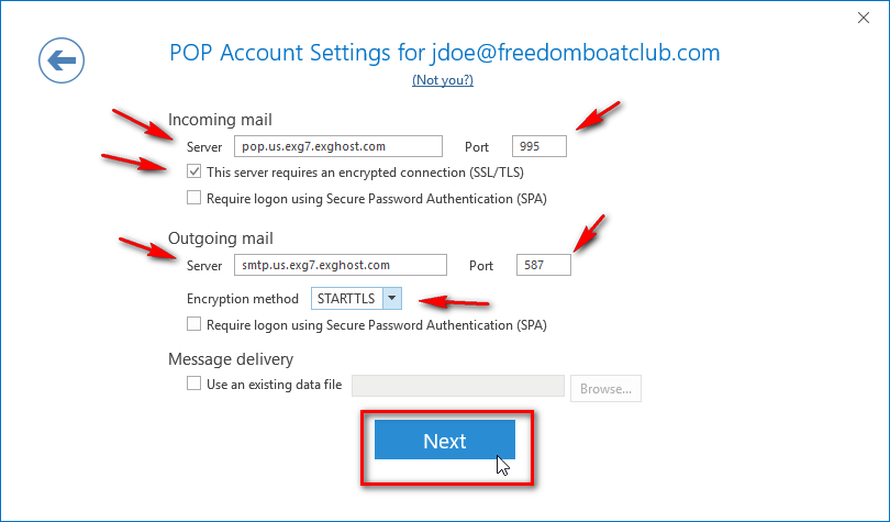 Under Incoming mail server, enter pop.us.exg7.exghost.com