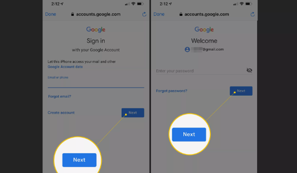 Enter your Gmail email address password. Then tap Next.